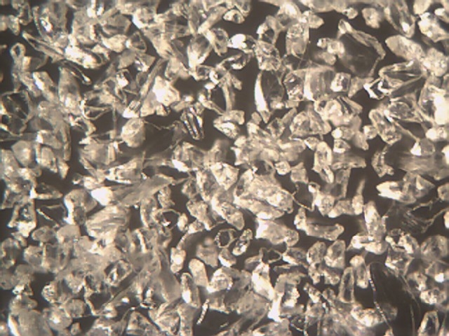 Particles are angular with sharp cutting edges. As the media is reused, edges gradually fracture, producing finer particles while retaining cutting capability.